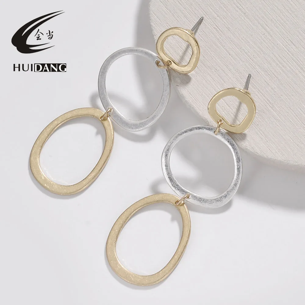 معرض من المرأة الأوروبية مجوهرات من الذهب الفضة اثنين من لهجة اللون 3 المعادن دائرة أقراط طويلة انخفاض الأقراط