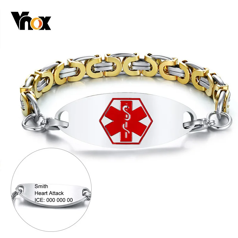 أرغب في شراءمعلومات اضافية Vnox شحن تخصيص الطبية تنبيه ID Braceles للنساء الرجال البيزنطية رابط سلسلة 2 لهجة الفولاذ المقاوم للصدأ نوع 1 السكري الإسورة